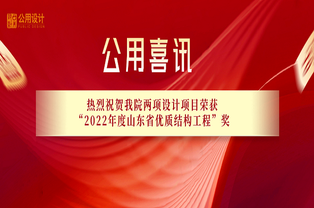 • 公用喜訊|公用設(shè)計兩項設(shè)計項目榮獲“2022年度山東省優(yōu)質(zhì)結(jié)構(gòu)工程”獎