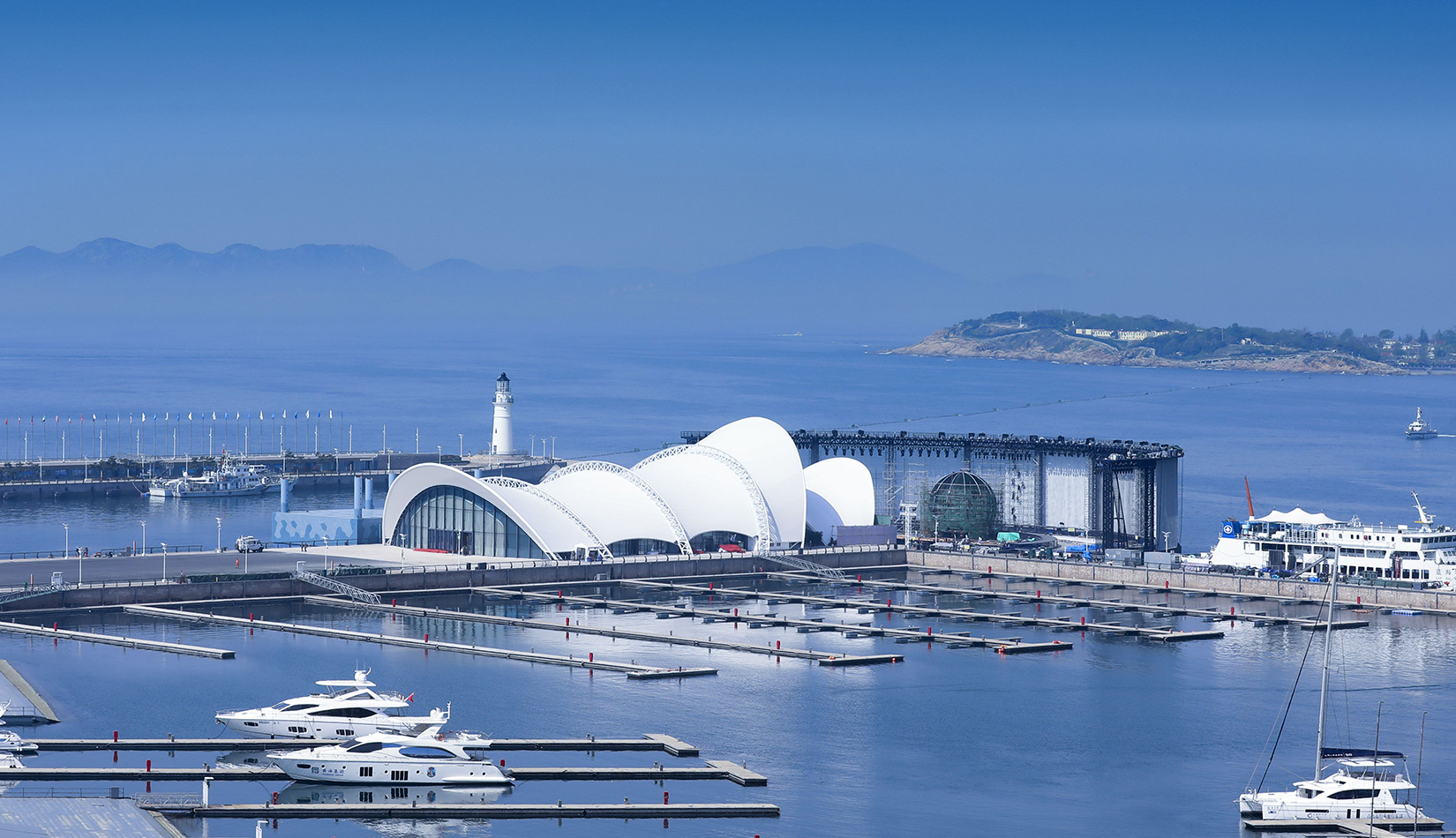 本項目在保留原有建筑主體結(jié)構(gòu)的基礎(chǔ)上,結(jié)合本次會議活動的相關(guān)需求,對其規(guī)模、形象、功能進(jìn)行改造提升。主題材料采用輕盈的鋼結(jié)構(gòu)與膜結(jié)構(gòu),造型宛如海浪中靈動的風(fēng)帆,彰顯青島這座海洋名稱、帆船之都的獨(dú)特魅力。