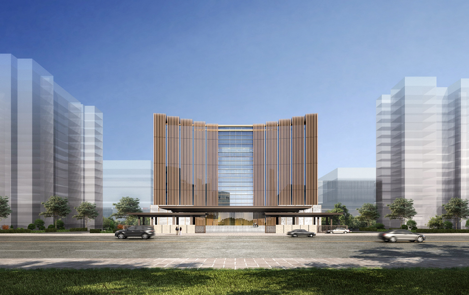 結(jié)合周邊的環(huán)境和節(jié)省造價(jià)的因素綜合考慮,建筑立面為干凈簡(jiǎn)潔的現(xiàn)代風(fēng)格,臨床中心以橫向線條為主,公共衛(wèi)生中心以豎線條為主,市民健康體驗(yàn)中心強(qiáng)調(diào)建筑的標(biāo)志性;建筑平面主要解決不同功能的區(qū)域劃分和避免流線交叉的問題。