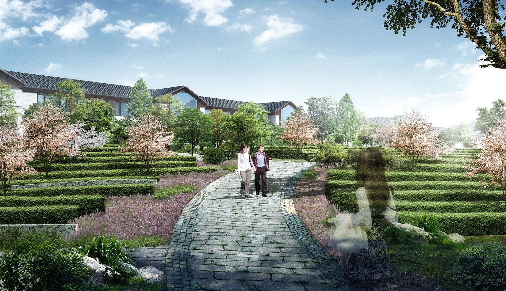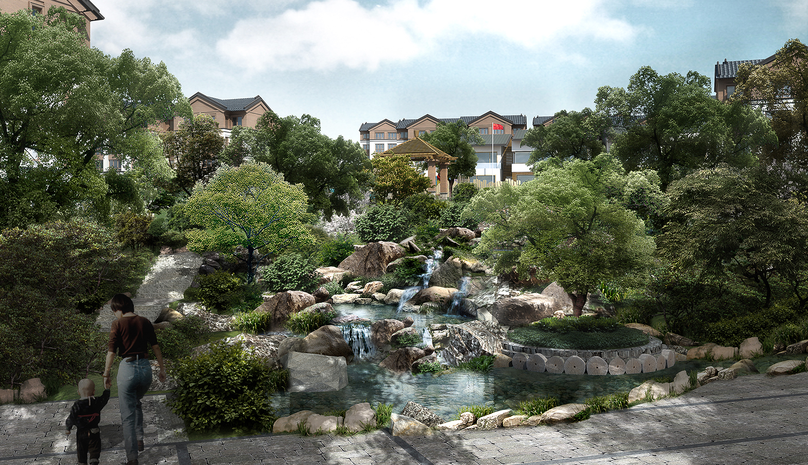 以“鄉(xiāng)村振興” 為背景,以“藏馬山居生活”為目標核心,項目把東方田園與住區(qū)生活融為一體、貫穿自然生態(tài)、海綿城市的設(shè)計理念。景觀設(shè)計挖掘藏馬山的特色文化,延續(xù)當?shù)鼐G色生態(tài)、山野趣味的自然風(fēng)貌,通過場景化的展示,融入到景觀設(shè)計中,打造特點鮮明、各有特色的入口體驗、商業(yè)街區(qū)、山居生活三大板塊。