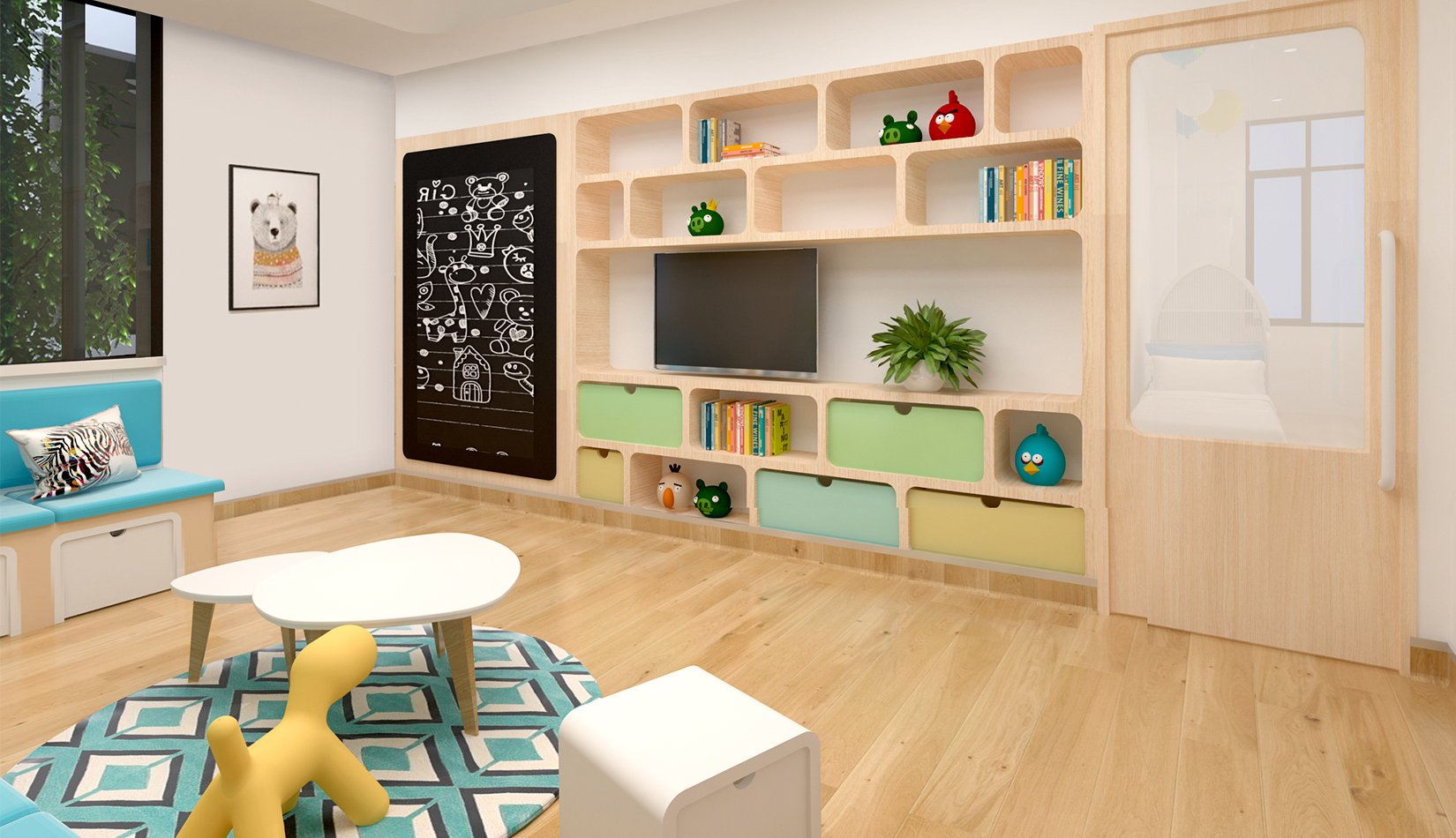 室內(nèi)延續(xù)建筑,空間內(nèi)部采光非常好。設(shè)計(jì)簡潔、現(xiàn)代,以白色為主色調(diào),搭配淺木色作為室內(nèi)顏色?;顫姟⒑脛?、天真、可愛是兒童最大的特點(diǎn),在其具體功能空間設(shè)計(jì)中,我們把這些特點(diǎn)和空間色彩結(jié)合起來,不同的空間根據(jù)其使用功能,采用了不同的色彩搭配。