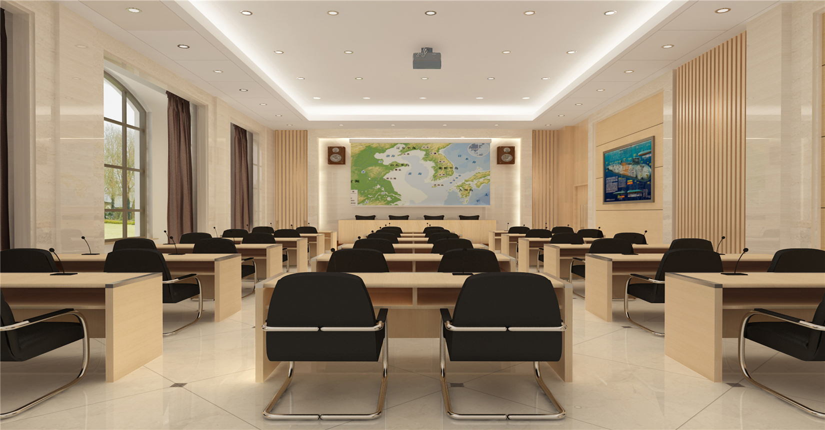 在造型語言上以經(jīng)典的裝飾語言表達(dá)了空間節(jié)奏,材質(zhì)色調(diào)的理性而精致。與整體學(xué)院風(fēng)格互為潛透、風(fēng)格統(tǒng)一、莊重簡(jiǎn)潔,力求體現(xiàn)創(chuàng)新、高端,營(yíng)造卓越的學(xué)術(shù)氛圍。